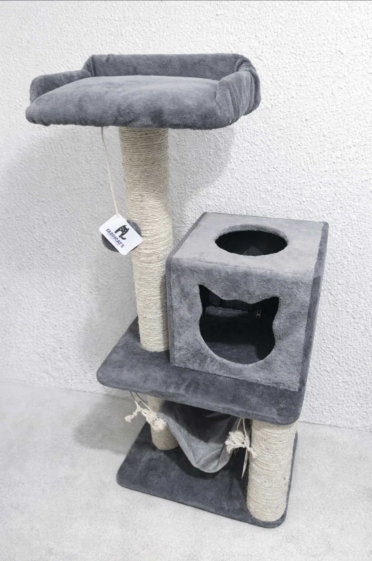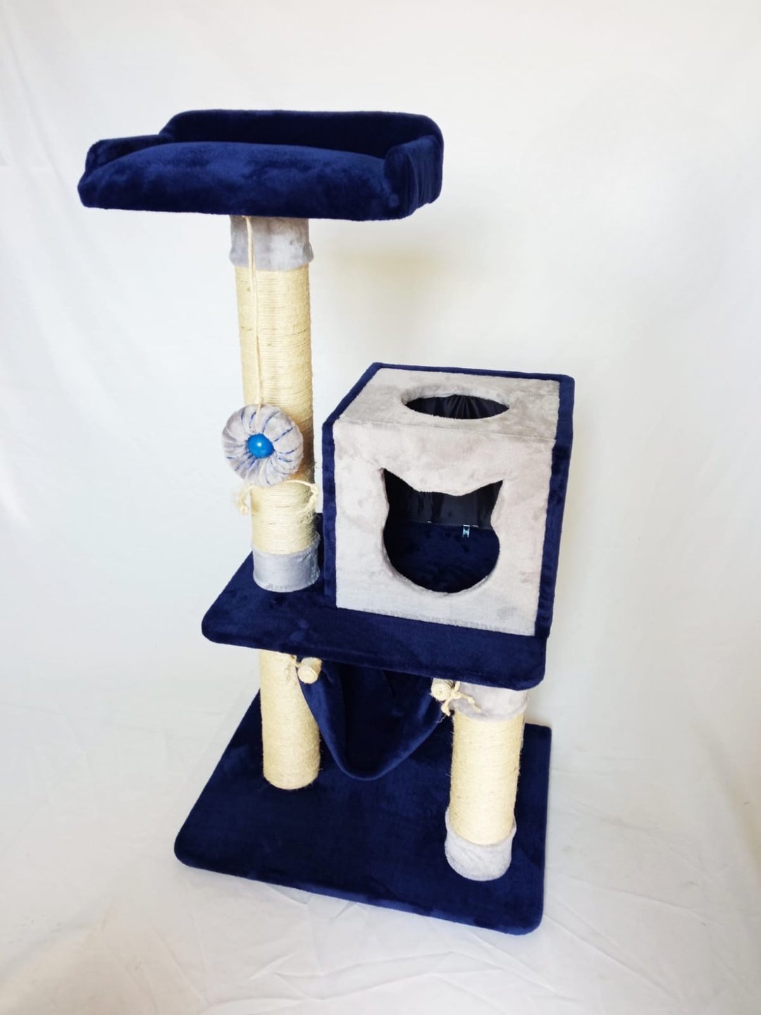 Cuenta con un poste rascador ideal para mantener sus uñas saludables, una hamaca inferior para momentos de relajación y una cueva espaciosa que brinda privacidad y seguridad.