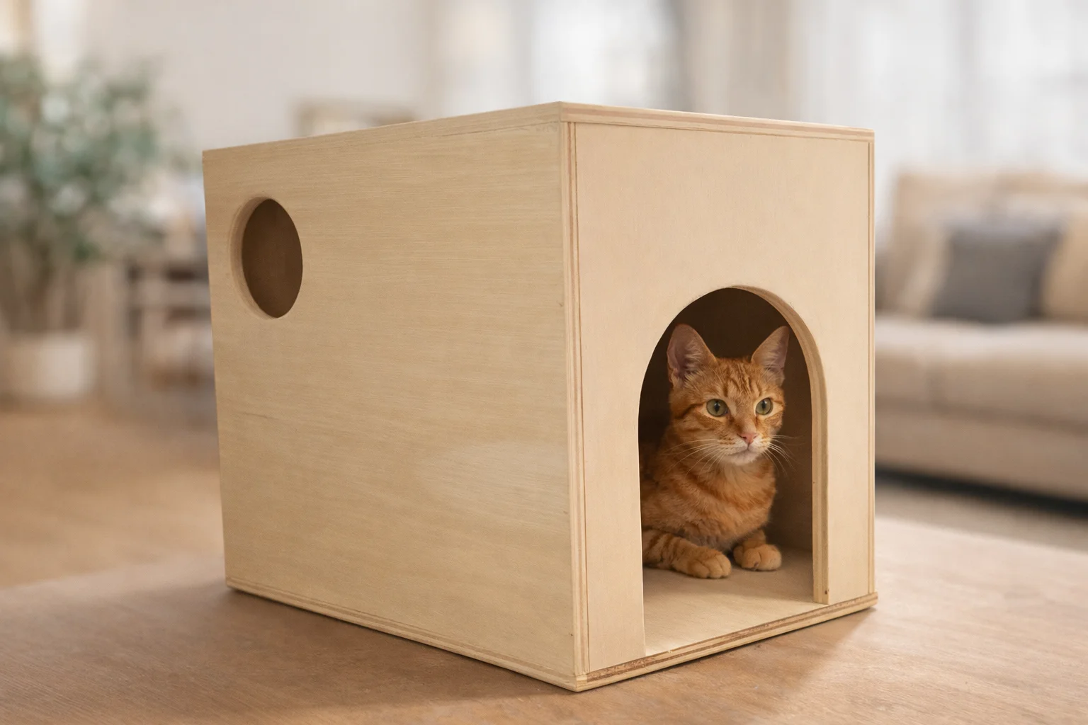 La Casa Sencilla es un módulo de descanso diseñado para brindar a tu michi un espacio cómodo, seguro y acogedor. Su diseño cerrado permite que los gatos tengan un refugio tranquilo donde relajarse, dormir o esconderse mientras observan su entorno 😺✨.