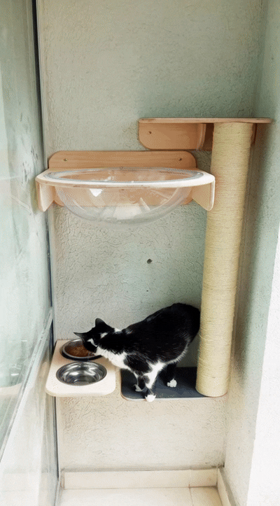 Incluye una espectacular repisa burbuja para observar el mundo desde lo alto, rascador alto forrado en sisal para afilar uñas, plataformas para saltar y un comedor flotante doble. ¡Todo lo que tus michis necesitan para estar activos y felices!