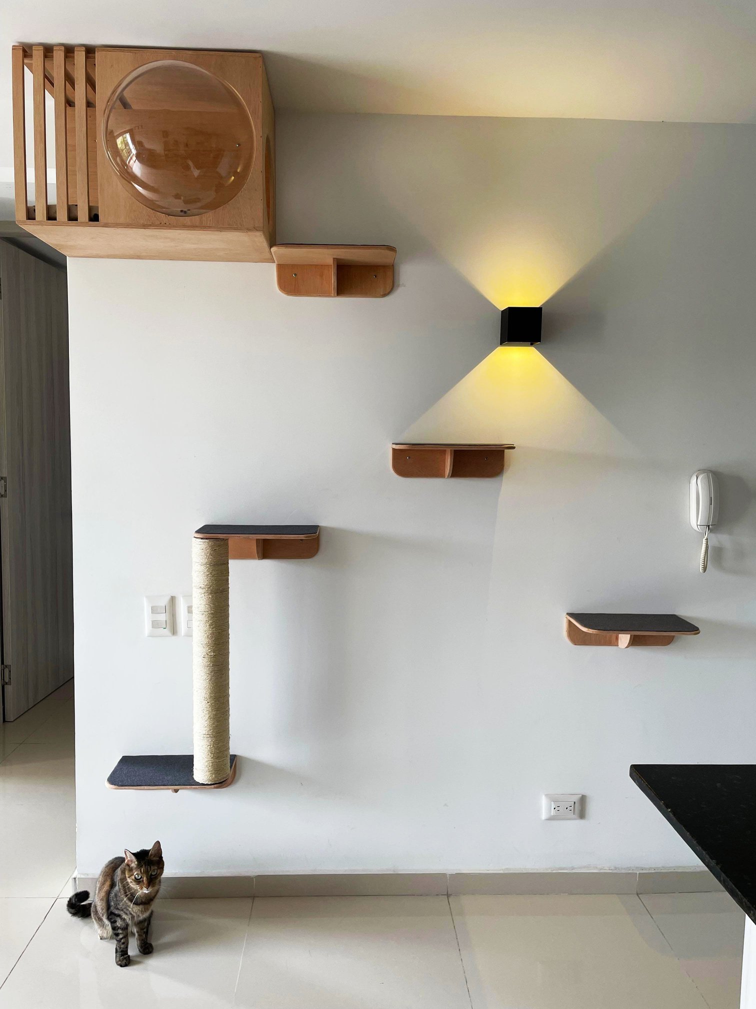El Combo #21 es una solución premium para enriquecer el ambiente de tus gatos en casa. Incluye una casa elegante, repisa burbuja y plataformas resistentes, ideales para trepar, explorar y descansar 😺.