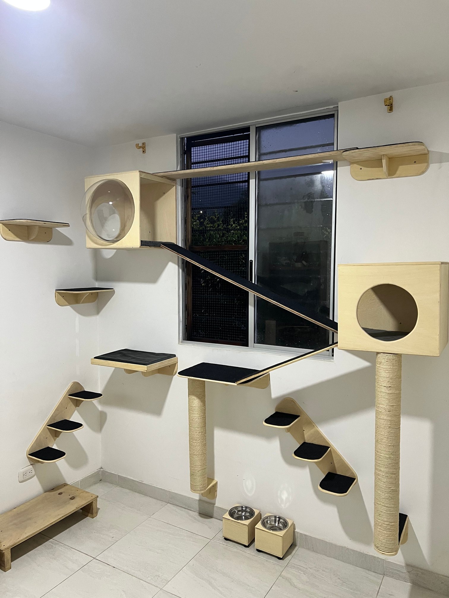 El Combo #28 es el sistema definitivo para amantes de los gatos que quieren aprovechar el espacio vertical de casa y ofrecer a sus michis un gimnasio, zona de descanso y de juegos en diferentes niveles 🐱🏠. Incluye casas, repisas, rascadores y puentes para horas de diversión y relax, ideal para gatos activos o familias multi-michi.