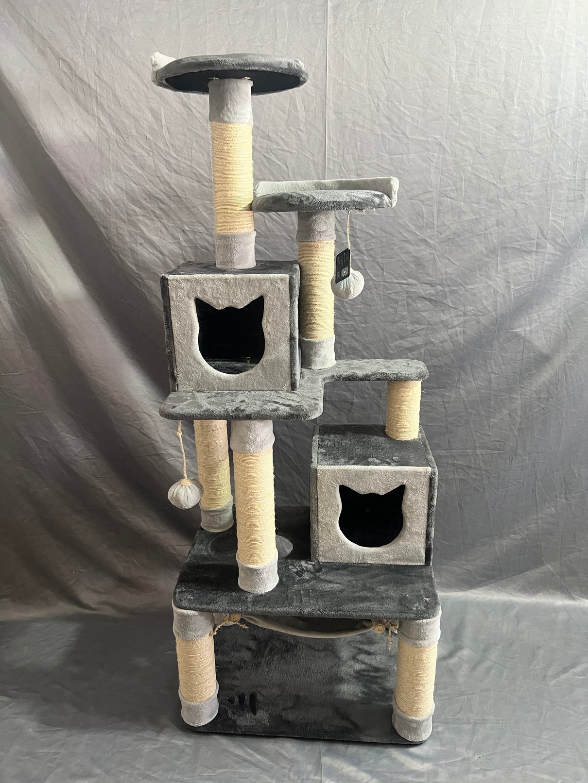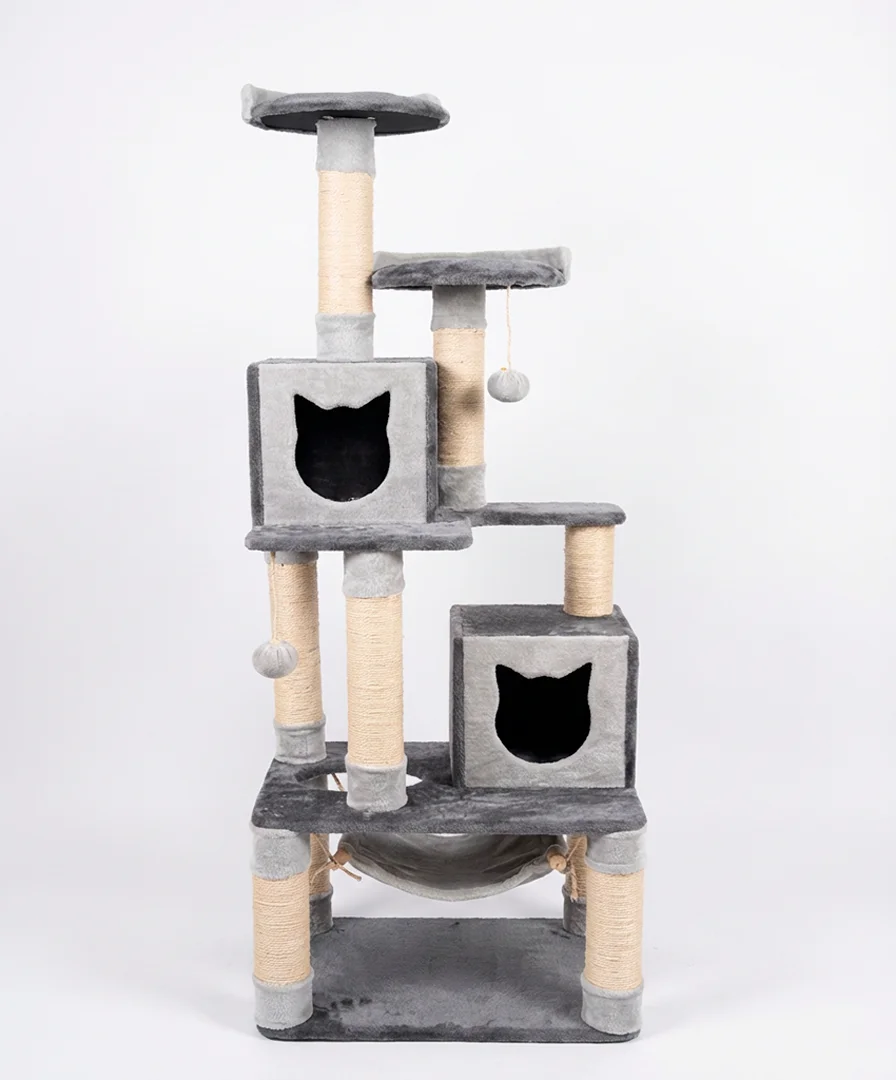 Los postes altos recubiertos de sisal natural permiten que tu gato afile sus uñas sin dañar tus muebles, mientras que los juguetes colgantes añaden diversión y estimulación diaria.